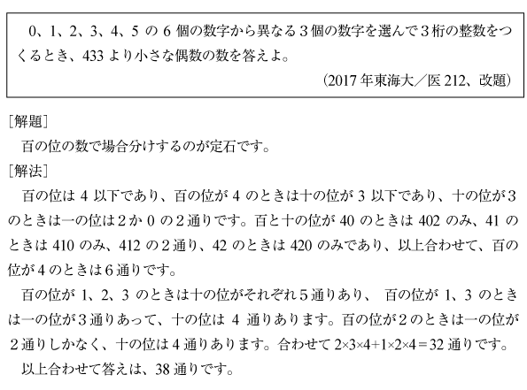 [B]指定値より小さい3桁の数を作る問題(2017年東海大/医212)