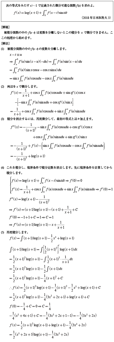 [C]2回の微積分が必要な積分方程式の問題(2018年日本医科大3)