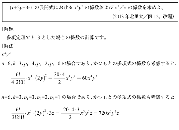 [A]多項定理の係数の問題(2013年北里大/医12)