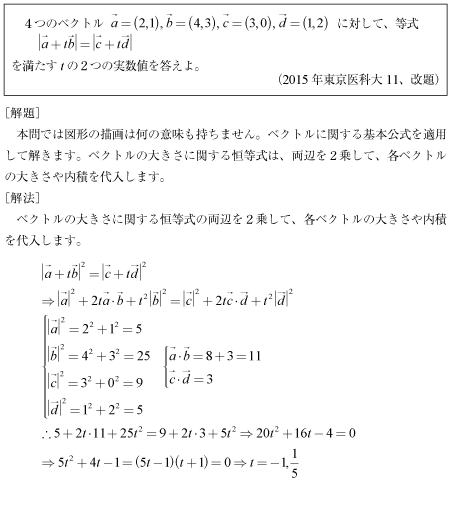[A]ベクトルの内積からパラメータを求める問題(2015年東京医科大11)