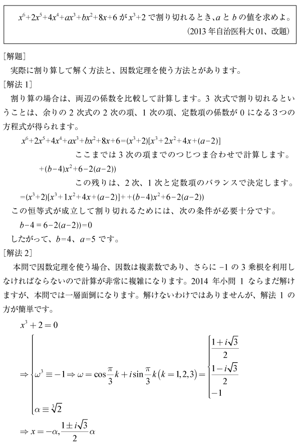 [B]6次多項式が割り切れる問題(2013年自治医大01)