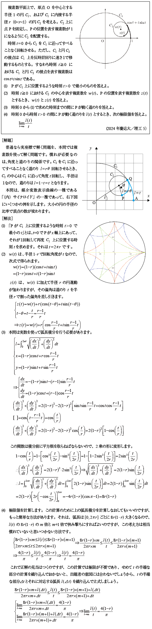 [C]内サイクロイド曲線の複素数問題(2024年慶大/理工5)