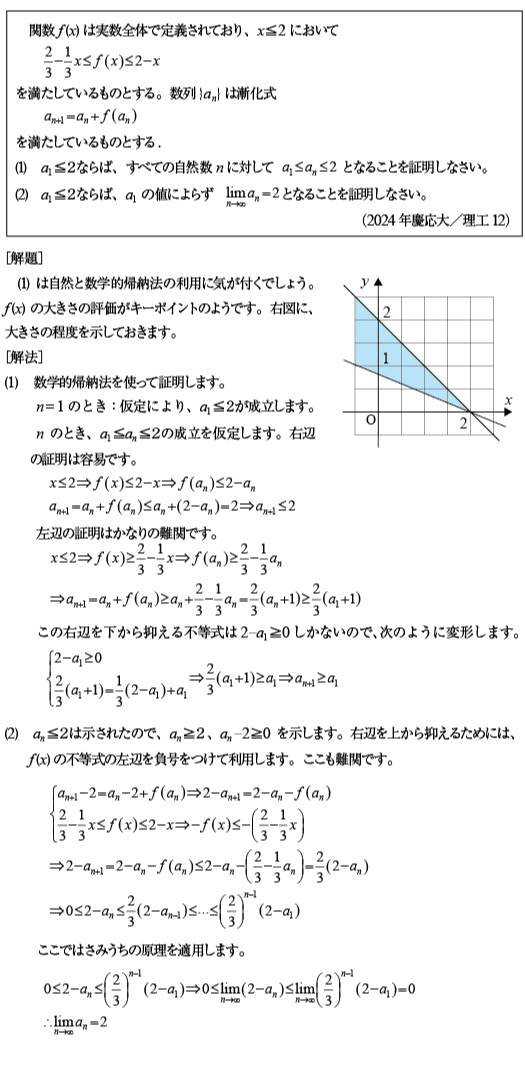 [C]数列と不等式の融合問題(2024年慶応大/理工12)