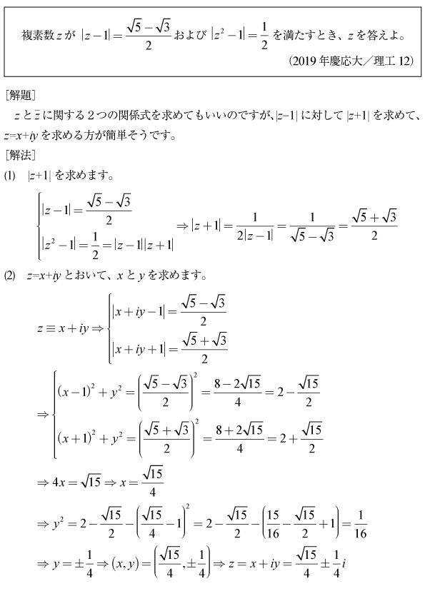 [B]複素数に関する連立方程式の問題(2019年慶応大/理工12)