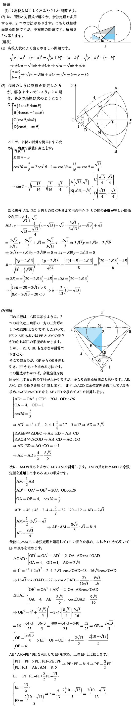 [B]平面図形に関するやさしい問題(2016年慶応大/総合政策5)