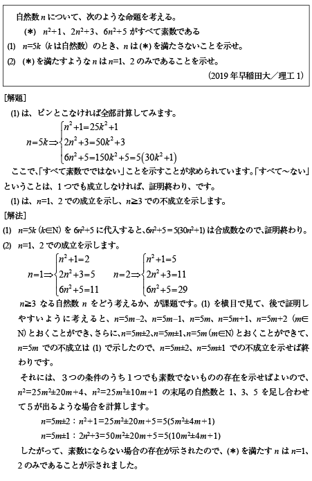 [B]剰余類を使って証明する素数の問題(2019年早大/理工1)