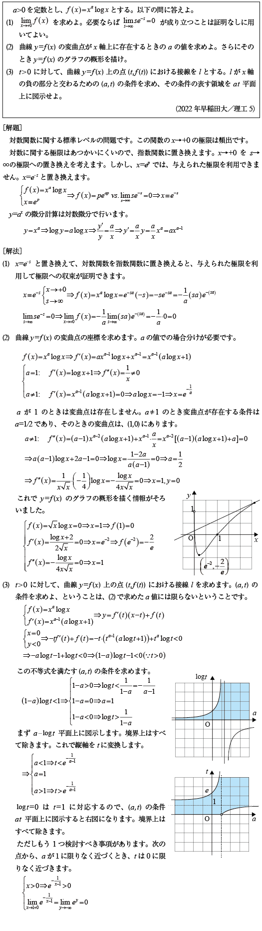 [D]対数関数とxのべき乗の積の関数の振る舞いの問題