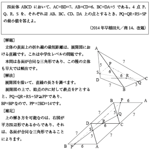 [B]合同三角形が構成する四面体の表面上の距離の問題