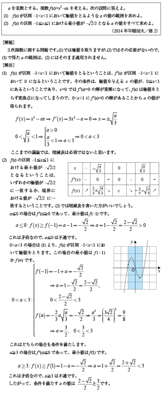 [B]3次関数の極値に関する問題(2014年早大/商2)