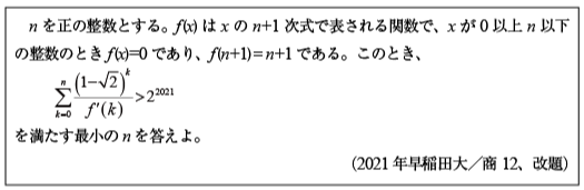 [D]多項式微分と二項係数の難問(2021年早大/商12)