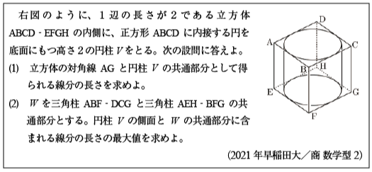 [D]2つの三角柱の共有部分における円柱表面の線分の最大値の問題