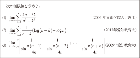 [B]区分求積法のやさしい入試問題(2009年青山学院大4)