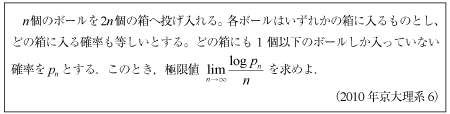 [B]確率に区分求積法を適用する問題(2010年京大理系6)