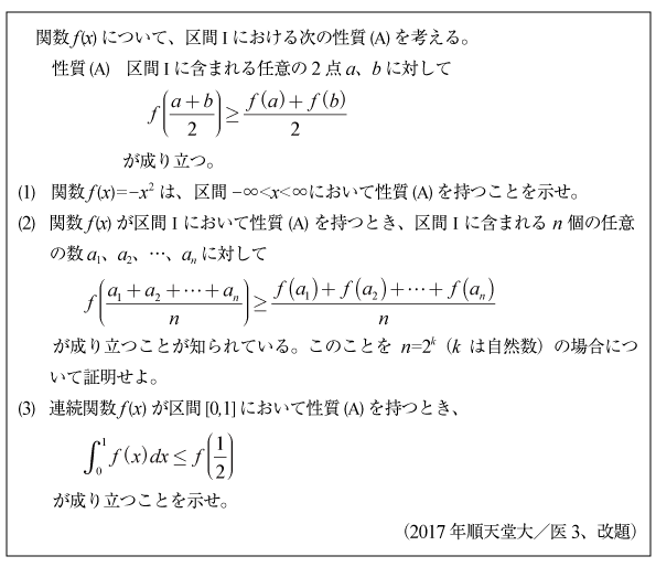 [C]不等式の証明に区分求積法を用いる問題(2017年順天堂大/医3)