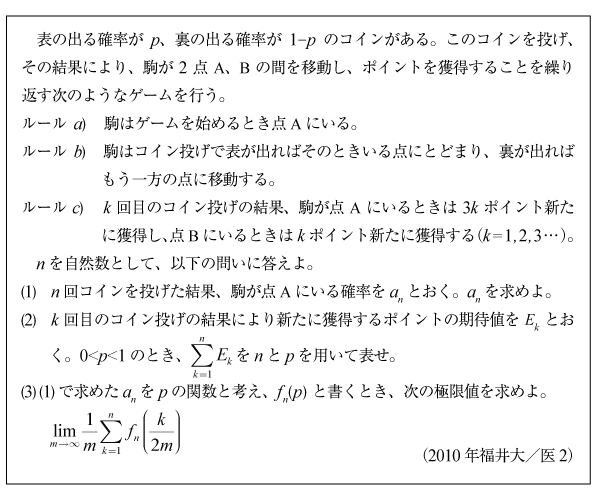 [C]確率計算に区分求積法を適用する問題(2010年福井大/医2)