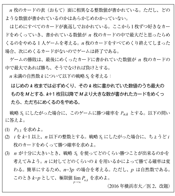 [C]数字不明のカードゲームの問題(2016年横浜市大/医2)