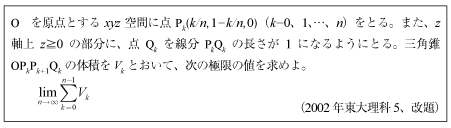 [B]三角錐の体積の無限和を区分求積法で求める問題(2002年東大理科5)