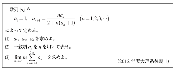 [C]分数漸化式と区分求積法の問題(2012年阪大後期理系1)