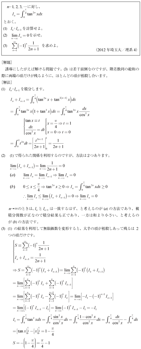 [C]三角関数の積分漸化式の問題(2012年埼玉大/理工4)