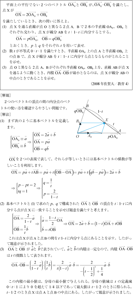 [A]ベクトル方程式の基礎問題(2008年佐賀大/教育4)