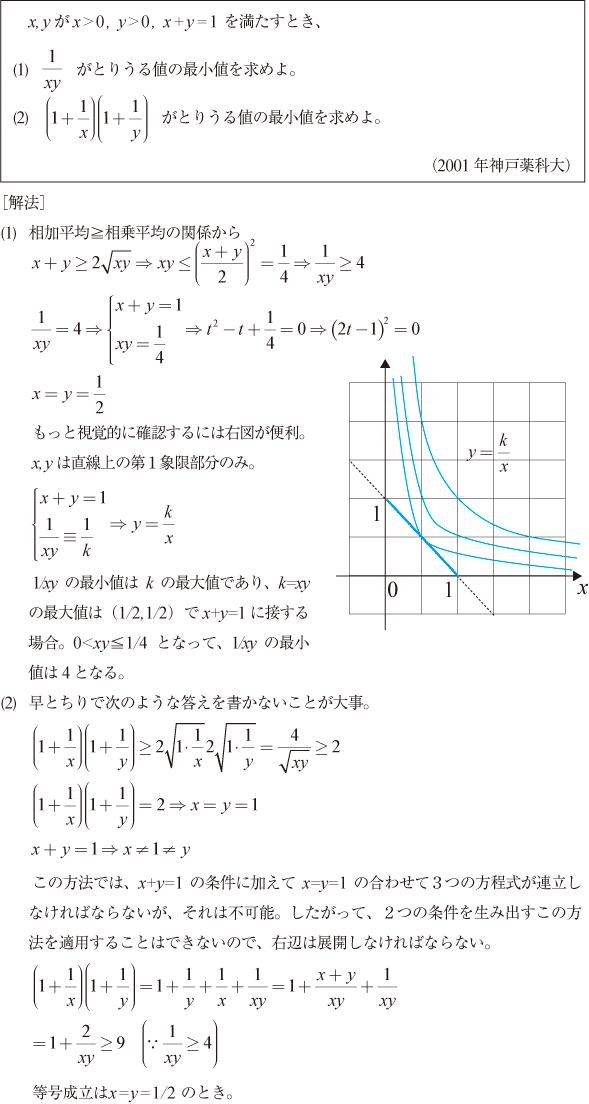 [B]相加平均≧相乗平均の関係を使う間違いやすい問題(2001年神戸薬科大)