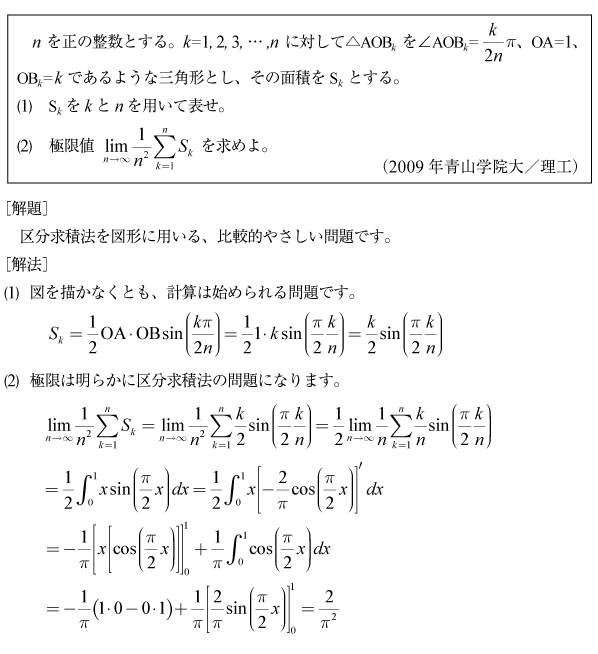 [B]区分求積法のやさしい入試問題(2009年青山学院大/理工4)