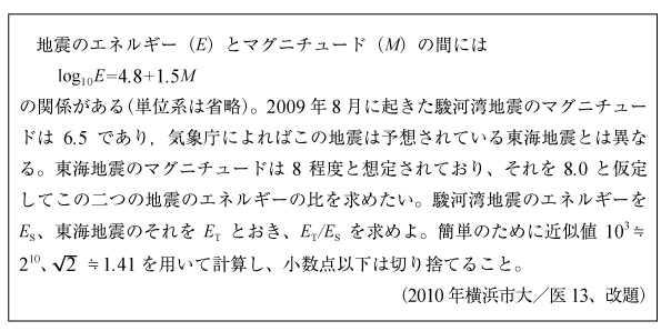 [B]地震と対数の問題(2010年横浜市大/医13)