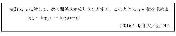 [B]連立対数方程式の問題(2016年昭和大/医242)