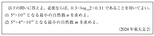 [C]対数を使って解く指数の整数問題(2024年東大文2)