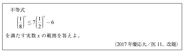 [A]指数不等式の問題(2017年慶應大/医11)