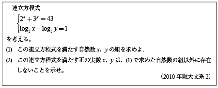 [B]指数対数連立方程式の問題(2010年阪大文系2)