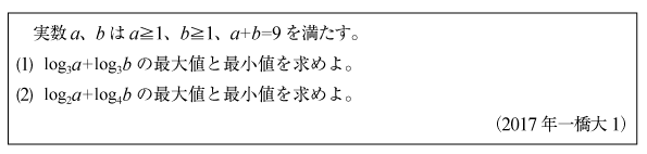 [B]対数式の最大最小の問題(2017年一橋大1)