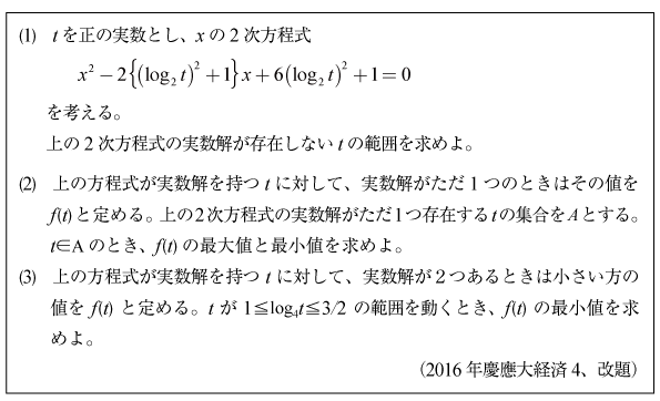 [C]対数係数方程式の問題(2016年慶應大/経済4)