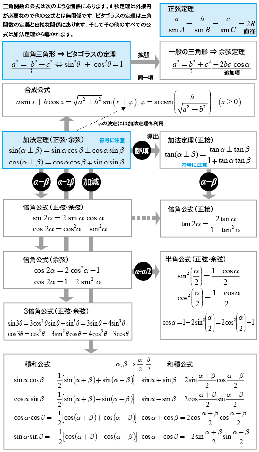 三角関数では、全部暗記するのではなく、「困ったらその場でつくれる(確認できる)」ことが必要です。暗記しても少し間違ったら大怪我します。暗記に埋没しては、数学のおもしろさはわかりません。おもしろくなくては入試にも受かりません。