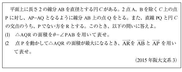 [C]円内の三角形の面積を最大化する問題(2015年阪大文系3)