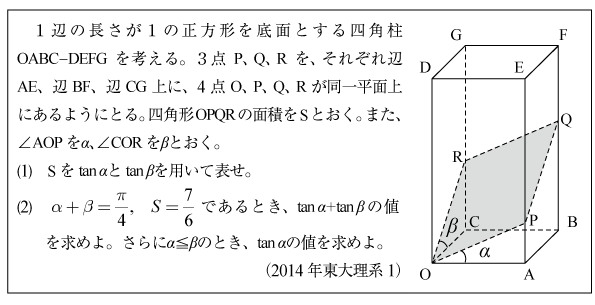 [C]四角柱を斜めに切る平面の面積の問題(2014年東大理科1)