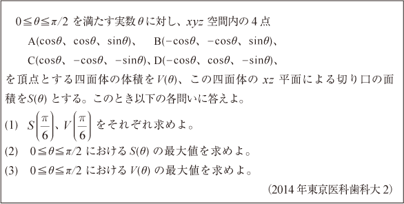 [C]直方体の中の四面体の問題(2014年東京医科歯科大2)