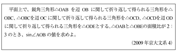 [B]4つの合同三角形の頂角の正弦を求める問題(2009年京大文系4)