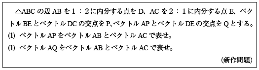 それぞれのメリットを実感するのに最適な入試問題があり、以下に示します。内積はベクトルの初歩のレベルに属しますが、内分点・外分点をあつかうベクトル方程式は若干むずかしいので、[解説]ベクトル方程式を用意しておきます。これは筆者が受験したころは難問あつかいで,余り入試には出題されませんでしたが、最近は超頻出の問題です。