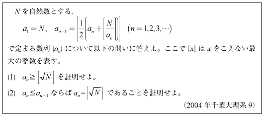 [C]ニュートン近似の平方根計算の問題(2004年千葉大/医9)