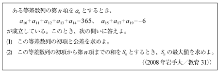 [B]等差数列の最大値の問題(2008年岩手大/教育31)