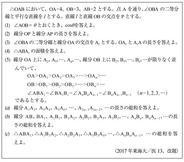 [B]図形上の無限等比数列の問題(2017年東海大/医13)