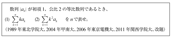 [B]等差数列×等比数列の和の問題(1989年東北学院大)