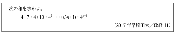[B]自然数と4のべき乗の積和の問題(2017年早大/政経11)