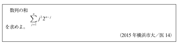 [C]自然数の2乗と2のべき乗の積和の問題(2015年横浜市大/医14)