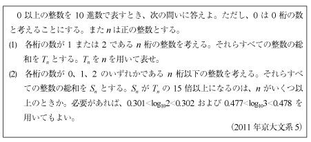 [B]限られた数字を並べてつくった数の和の問題(2011年京大文系5)