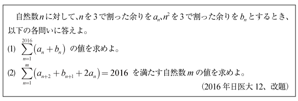 [B]自然数の割り算の余りの数列の問題(2016年日本医科大12)