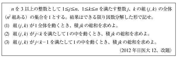 [A]自然数列の積和の問題(2012年日本医科大12)
