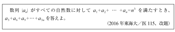 [A]部分和から一般項を求めて集計する問題(2016年東海大/医115)