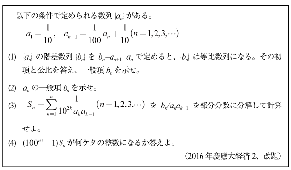 [B]様々な数列を組み合わせた問題(2016年慶應大/経済2)